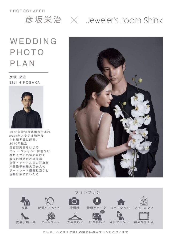 シンクさんと彦坂カメラマンがコラボレーションした、特別なウエディングフォトプランも用意されています。