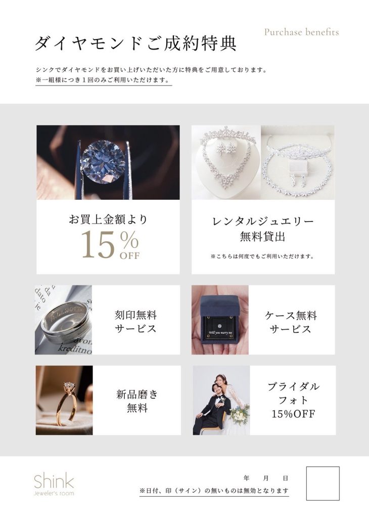 こだわりのオーダーメイド: 「彼女の好みがわからない…」という不安も、後からデザインをオーダーできる仕組みがあるので安心です。彼女の理想通りの指輪を贈ることができます。